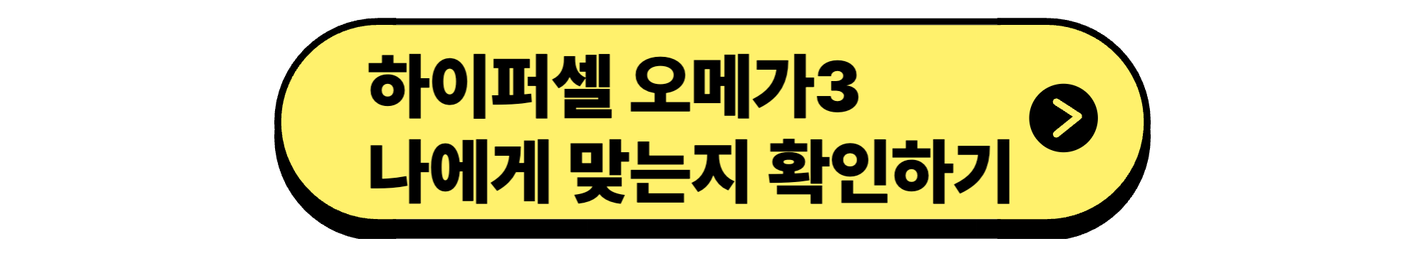 오메가3 먹고 트림 때문에 고생하셨다면, 하이퍼셀로 바꾸고 차이를 느껴보세요. 하지만 개인마다 성분 및 추천 섭취량이 다를 수 있으니 아래 글을 읽으시고 링크를 통해 온라인으로 간편하게 맞춤형 오메가3를 확인하시기 바랍니다.